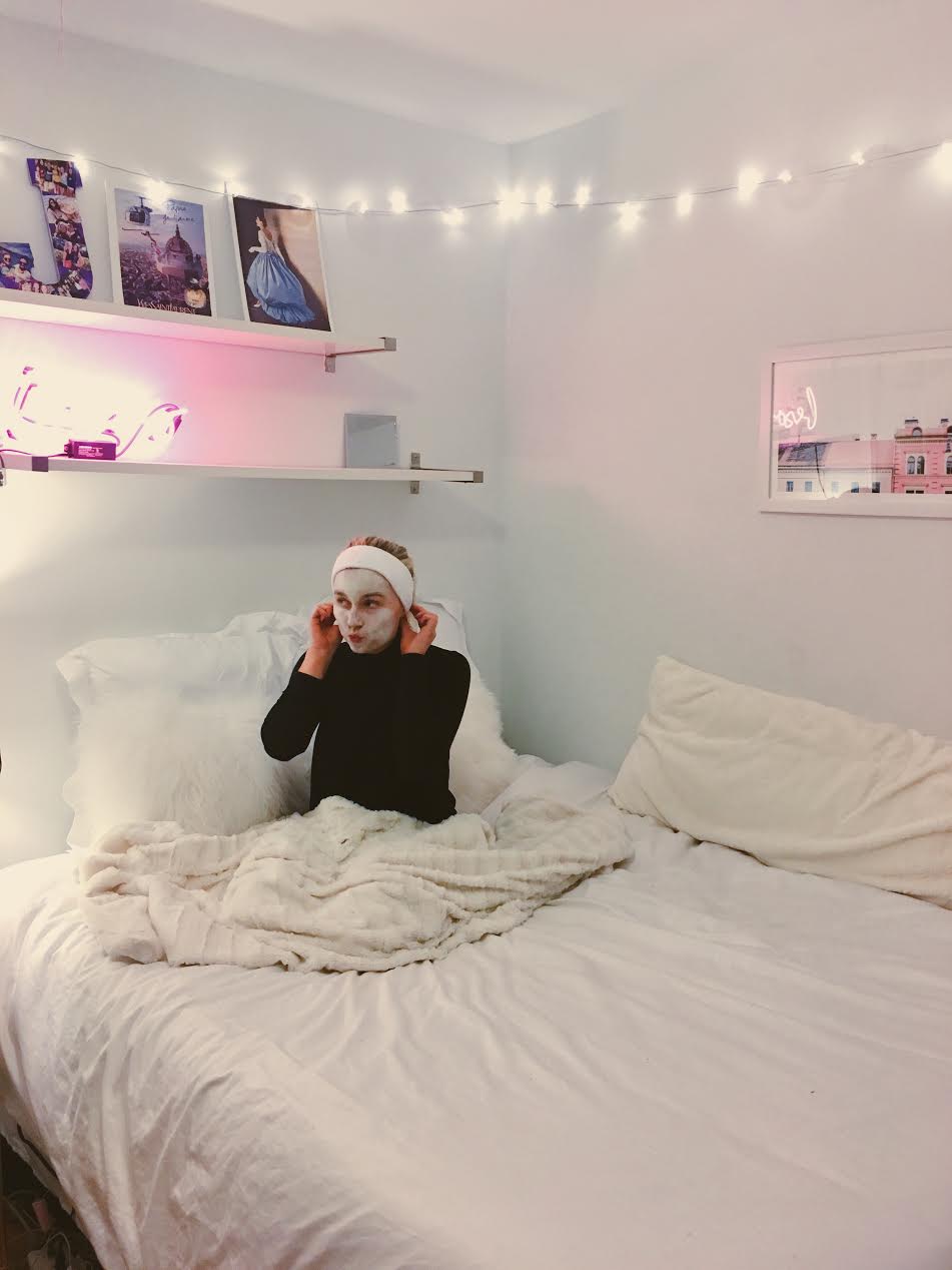 Cultivar’s Organic Anti-Acne Treatment is the single thing that keeps me pimple-free. Its mix of essential oils is hydrating enough to be used as a nightly face oil in warmer climates, or as a base for a moisturizer in the winter. At night, I put it on a bare face for about 15 minutes and then follow with Darphin Rose Care. My friend Hannah introduced me to Clarins Self Tanning Milky-Lotion, which is the only thing that will distinguish me from the snow in the winter. It gives you a super natural-looking tan, but the real kicker is that it keeps your skin smooth for a full 24 hours. And when times are especially desperate, Caudalie’s Glycolic Peel Mask will give you eight hours of sleep in 10 minutes. Every Sunday night, I put on a detoxifying mask—Caudalie and African Botanics both make great ones—and follow with Glossier’s Moisturizing Moon Mask. One of my most noteworthy beauty fails was actually mask related... One time last winter, I put on a clay mask and sat in a sauna for an hour. I’ll leave the results of that experiment to your imagination."