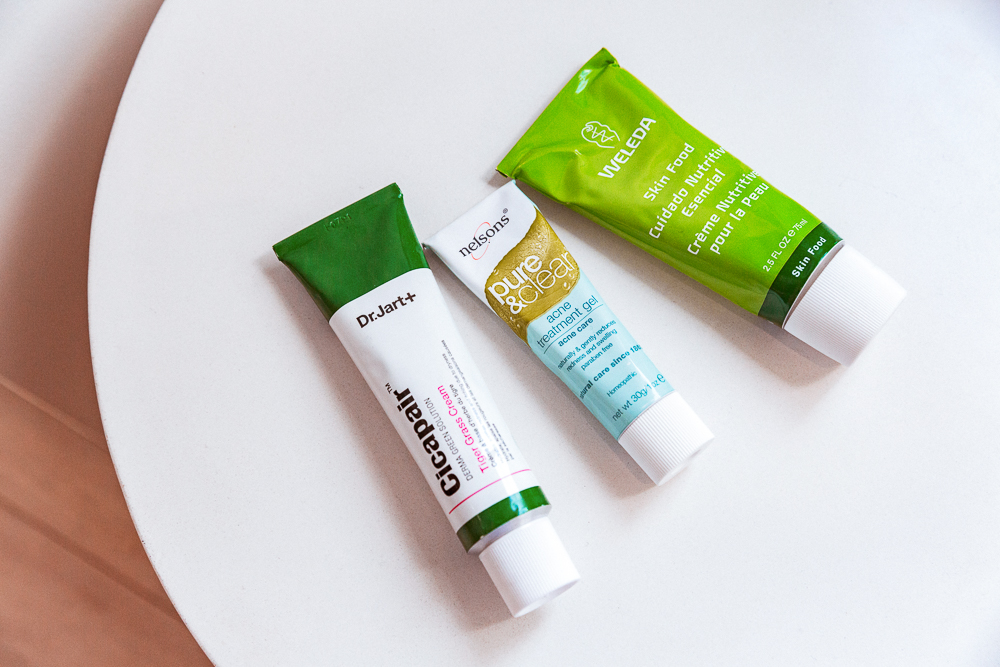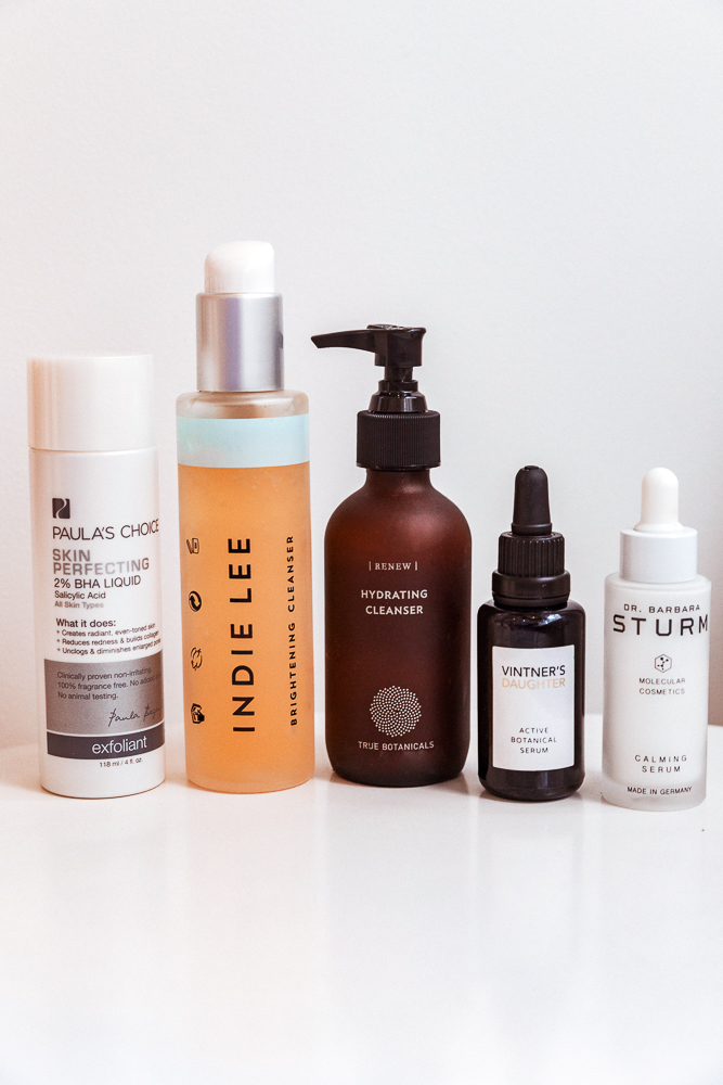 True acne treatments aside, I've found nothing better to soothe redness than Dr. Barbara Sturm's Calming Serum. If her blood cream is any indication of how good she is, I'll say that I think the Calming Serum is actually her hero product. I sweep on the gentle milk upward and all of a sudden, I'm working with a new face. On top of that, I'm liking Dr. Jart's new Cicapair Tiger Grass Cream. It's like a lighter version of Weleda's Skin Food, which I only bring out in case of flakey skin emergency. Dr. Jart's version is balmy, but it soaks in right away. On nights I want intense repair, I add about four drops of Vintner's Daughter Active Botanical Serum on top of that to seal it all in.