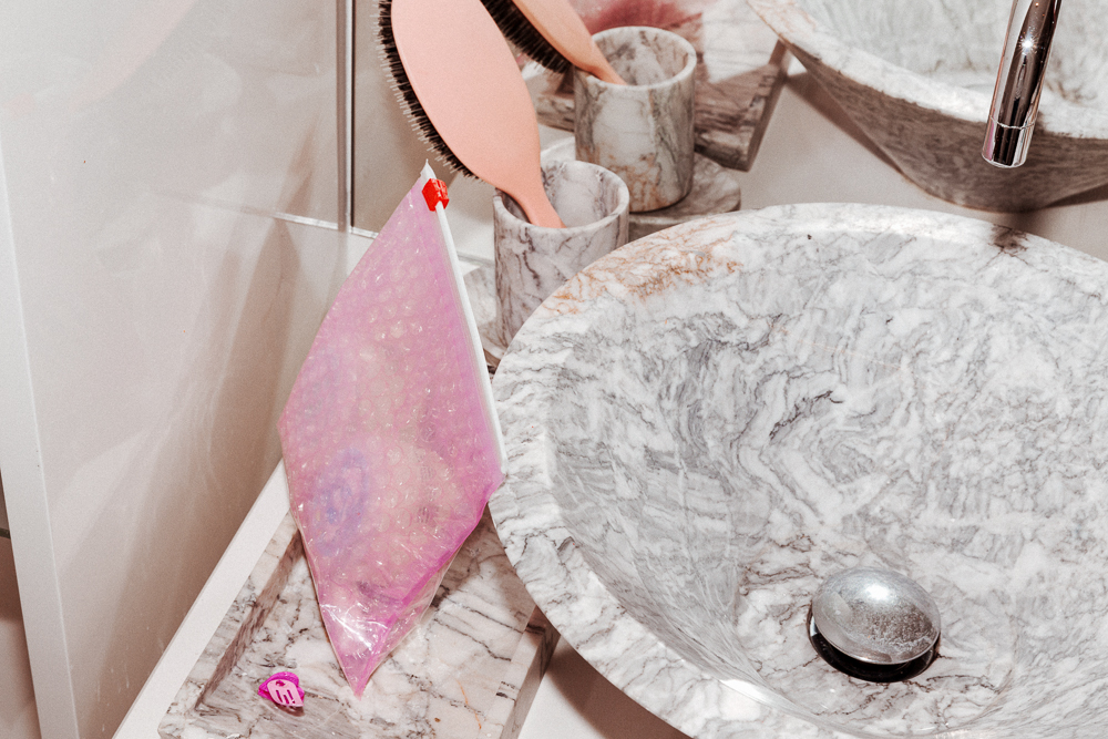 I cut my hair yesterday because I thought it was too long. Sometimes I'll do it myself, or sometimes I'll shuffle around [between hairdressers]—I'm not too picky. We used Cim [Mahony] for the Ganni show, and he told me to come see him if I wanted to do something different with my haircut. I just get it colored. It would be great if I didn't have to color it, but I do, because it's so boring. But dyeing it gives it texture. I've never had to use a blowdryer to get texture—if I did, my hair would be like hay. Sometimes I'll just use Clarins Tonic Body Balm on the ends.