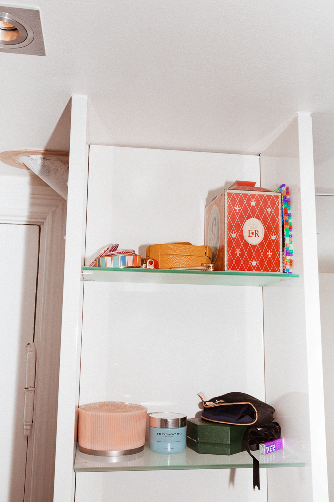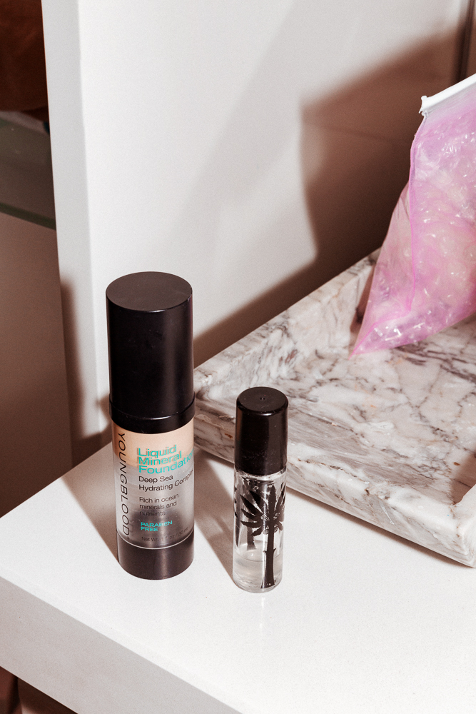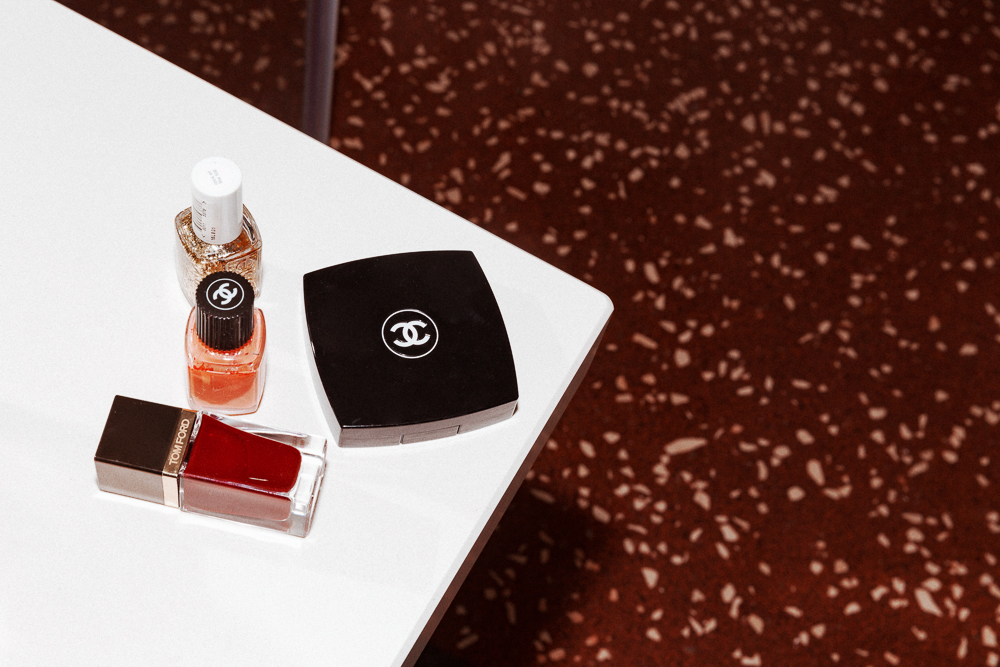 I always wear foundation—Youngblood Liquid Mineral Foundation is really cool. I just tried to Hourglass one, but that didn't work for me, it was too much of a mask. But the Youngblood is really good because it has a little bit of shine to it, and it gives a little glow. Then I'll use blush, either MAC or Tom Ford or Tromborg, which is a Danish brand. I like peachy blushes. I used to wear one that was reddish, but someone told me because I have red pigments in my skin, it was too much. So now I like more brown, peachy, dusty, like Tromborg Peach or Vintage. If my skin looks really bad, I'll use a finishing powder from Tom Ford. I don't wear lipstick very often... I think my lips are too small. For me, it's really the complexion that's important.