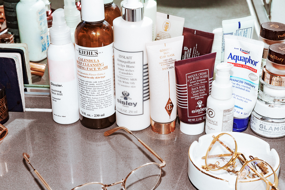 I do my own makeup for events and red carpet stuff. I love having a glass of wine and taking my time to do it—that’s really fun for me. Tonight it's really casual—I'm just heading to a friend's event—so I'll do my go-to look. But before makeup, I wash my face. Even if I already have makeup on, I like to start fresh. I use Kiehl’s Calendula Deep Cleansing Face Wash or I’ll use this Sisley Cleansing Milk. Then maybe I’ll use the Sisley Black Rose Precious Oil—tonight I needed it because I was a little dry.