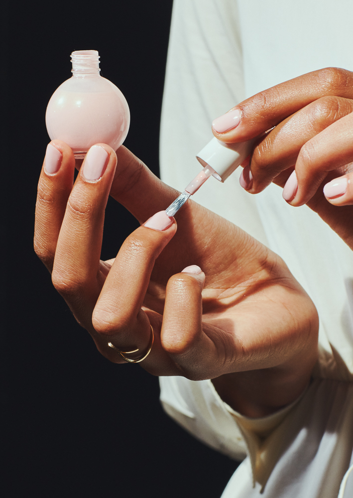 Photographed by Hanna Tveite. Makeup by Benjamin Puckey using the Glossier Black Tie Set. Hair by Cecilia Romero. Nails by Natalie Pavloski. Styled by Vanessa Traina.