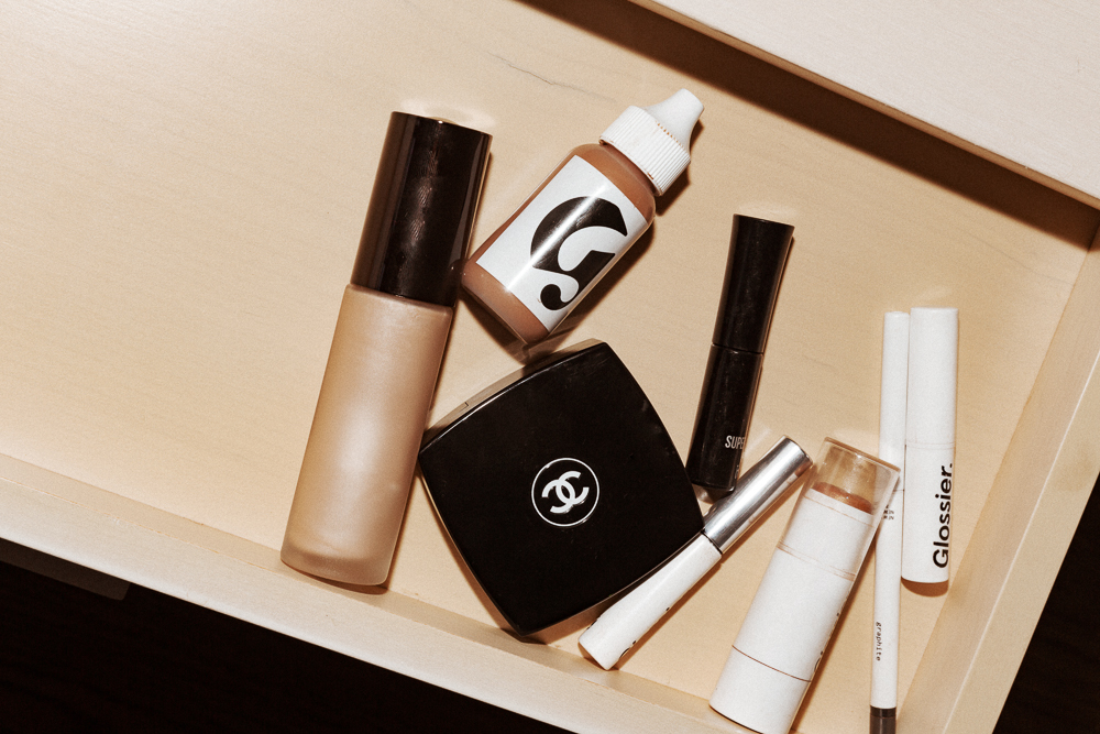 Don't let anyone tell you you can't do a lip and an eye look at the same time; but maybe when your dress is this loud, tone down all of the makeup. I mixed the Becca Backlight Priming Filter with Perfecting Skin Tint in Deep and applied it all over. I combed my eyebrows up with the Milk Makeup Gel Brow Brush and then used Glossier Boy Brow in Black. On my lids, I applied the brown shade from the Chanel Les 4 Ombres Intensifie palette with my fingers, followed by the Glossier No.1 Pencil. Smudge the eyeliner a bit for a subtle smoky look. I actually just discovered mascara so I played around with the It Cosmetics Superhero Elastic Stretch Volumizing Mascara. Then, Generation G in Leo on the lips and cheeks. I saved the highlight fun for last and went to town with Haloscope in Topaz.