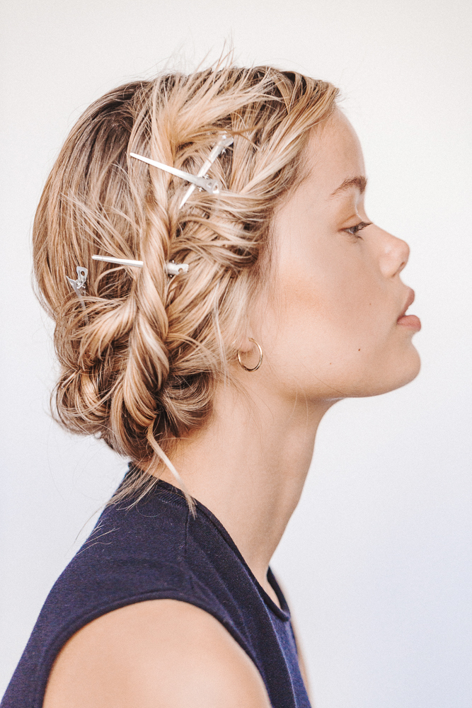 (One addendum: These techniques work for hair that doesn't hold waves or curls easily, which is to say, straight hair. Frida Aasen, above, has a medium amount of hair that dries pin straight and silky without any product. If that's you too, read on! And if not, we have some curly hair ideas in the works, too.)