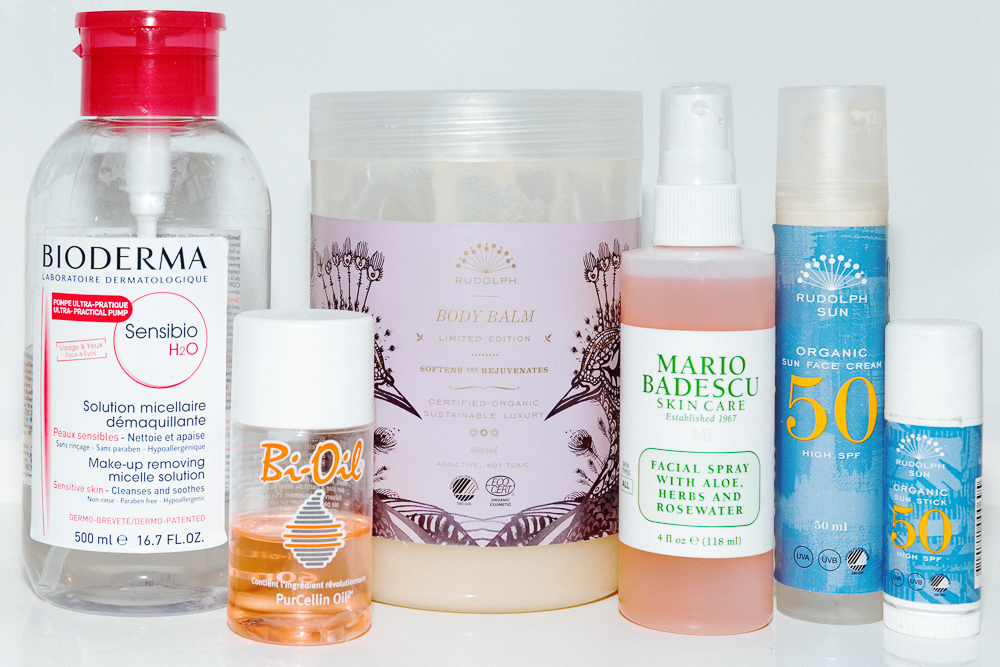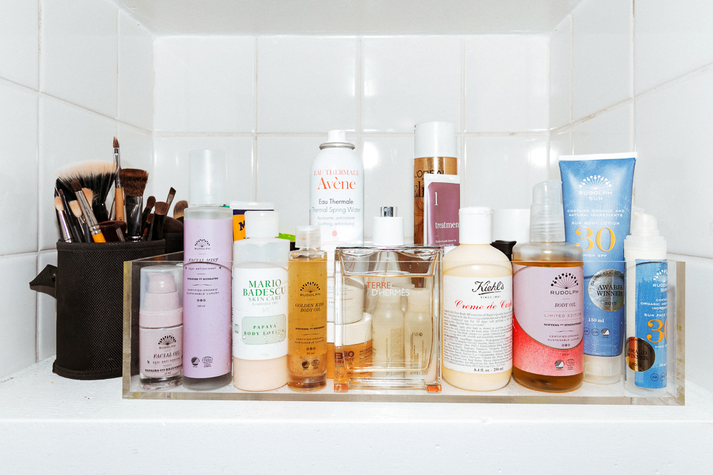 I love Rudolph Care's Sunscreen, which is good since I'm pregnant and it's easy to get a little pigmentation just from being outside. And then I spritz Mario Badescu's Rose Water Spray––I always keep one in my bag, it's so nice.