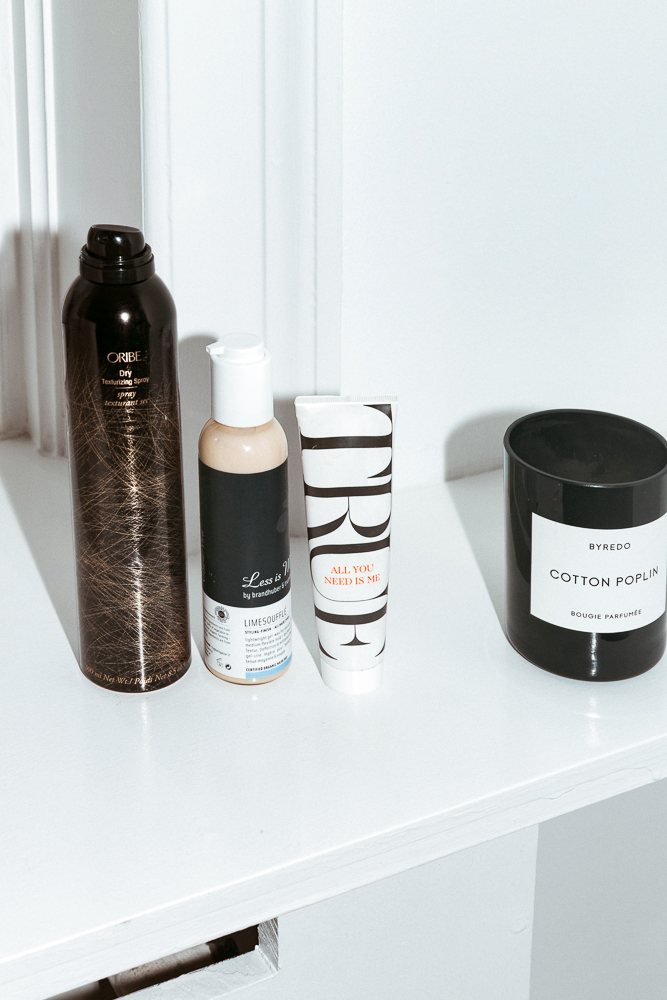 For product I use a little Less Is More Rose Serum through the ends, and then the Proteinspray and the Herbal Tonic––those are my two favorite products from that brand. I like the Limesoufflé too, which I'll use on dry hair to fuck it up a bit. In my work I do use Oribe a lot because their stuff really is nice. The Dry Texturizing Spray is the best I've found because it's transparent! So you can use it all over.