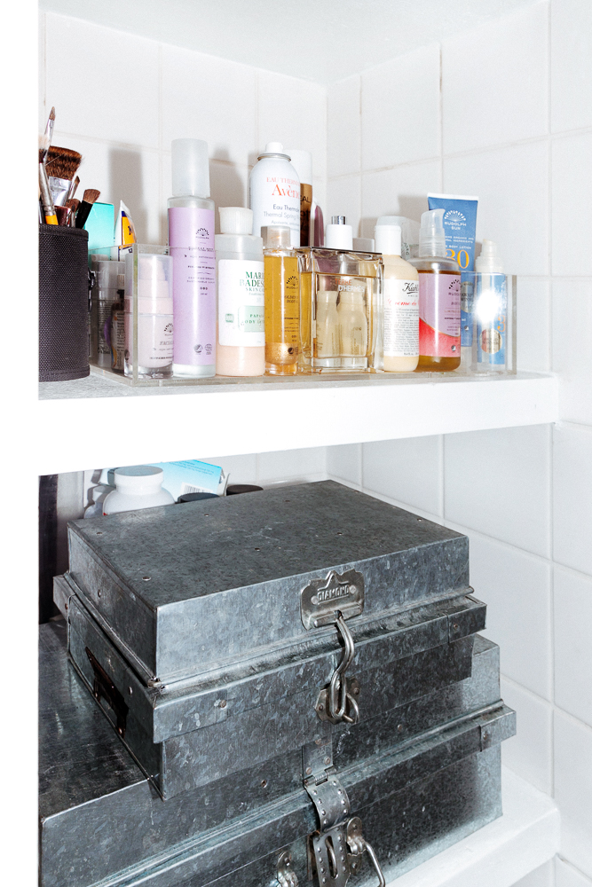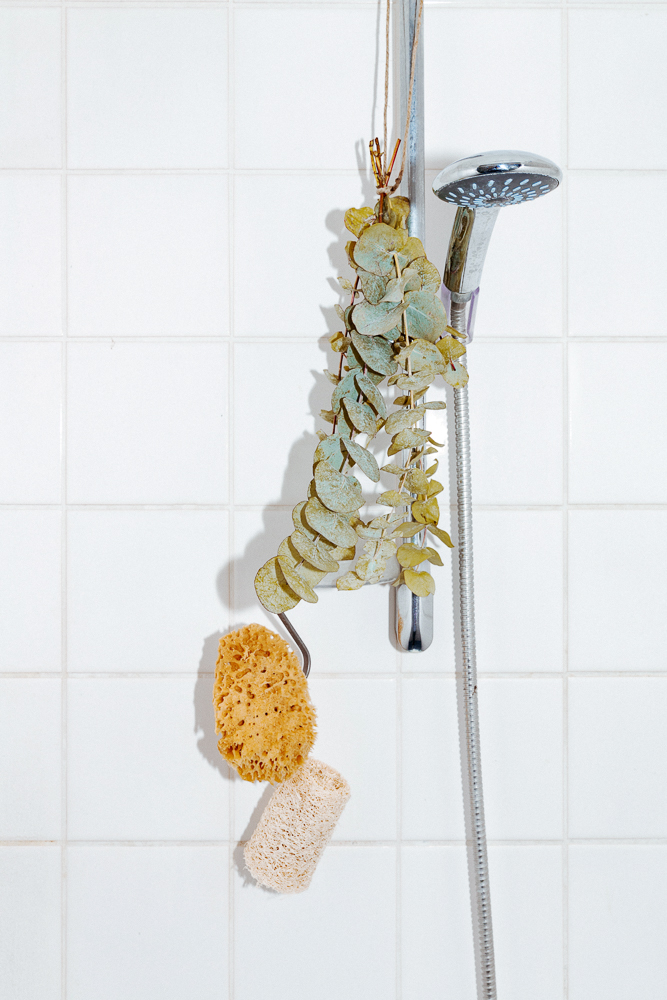 I use Walla Natural Deodorant, which is perfect for me, and I love Maison Francis Kurkdjian perfume––the Aqua Universalis Forte is my favorite, but it's super strong so you don't need that much. And I always keep some fresh eucalyptus in my bathroom or my shower because it smells really good, I love it. Just to hang in my shower. When the water hits the leaves, the whole bathroom smells so good."