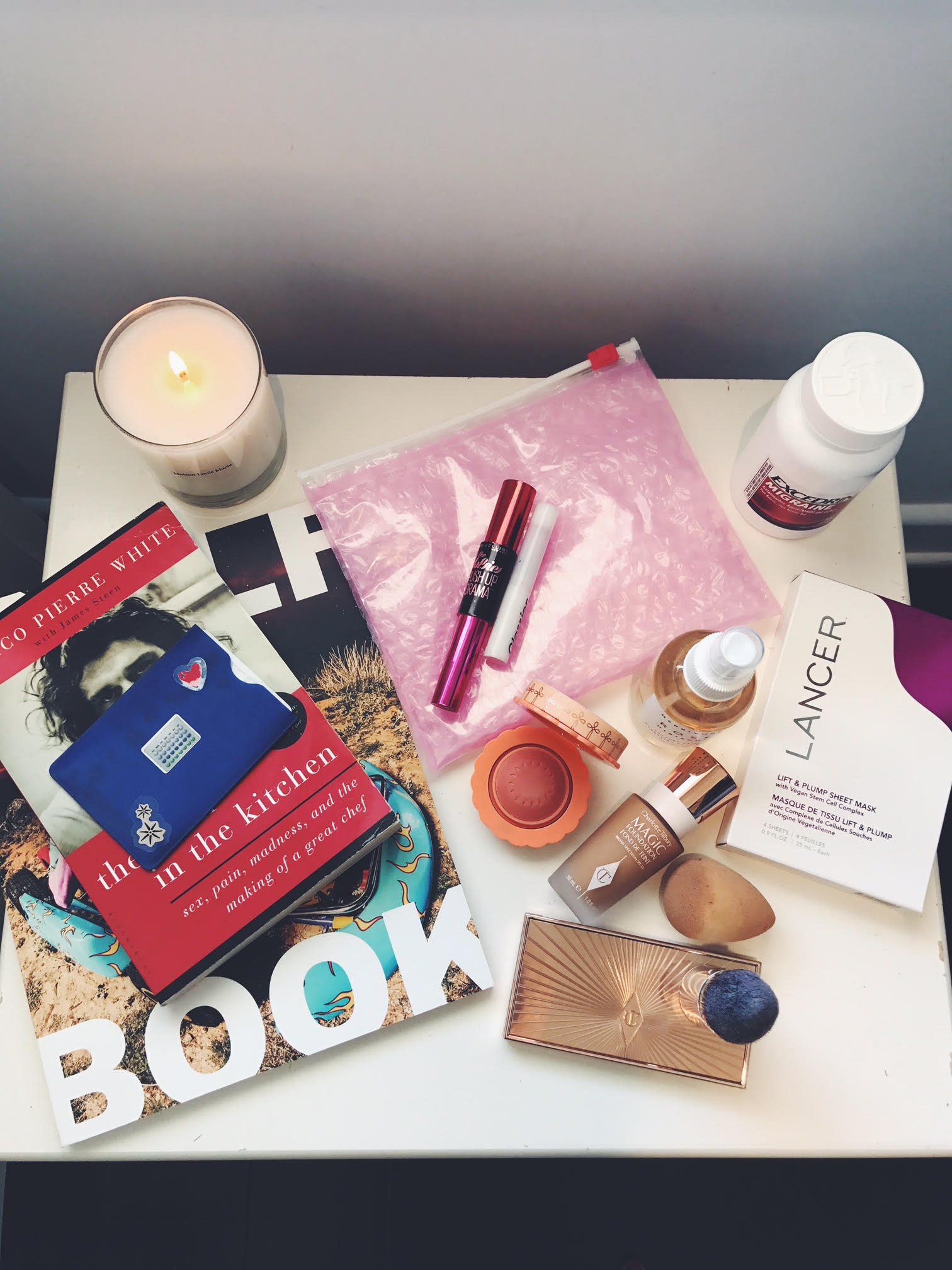 At night I'll wash my face with either Glossier Milky Jelly or Tatcha Camellia Cleansing Oil to get all my makeup off. Then depending on how gross I feel, I'll scrub first with Dr. Lancer Polish and follow that with Skin Laundry Gentle Wash. I take Spironolactone too. I've dealt with breakouts for over half my life and tried everything, but that's been the biggest help. I haven't yet jumped off the P50 Lotion bridge yet, but hopefully by the time this Top Shelfie posts, I'll be there. At night, I wear eye cream, and the Epione Eye Serum is insane. TBD on the rest of my face wrinkles but I'm so happy with the aging situation happening around my eyes. I apply some .05% tretinoin cream from my dermatologist or Sunday Riley Good Genes and follow with the same cream I used in the morning—right now, my moisturizer is Tatcha Ageless Cream. If I got a fun sample from a magazine or in a Sephora delivery I'll throw that in too. Inevitably I'll do the whole thing in the wrong order but I'll still feel very chic and luxurious.