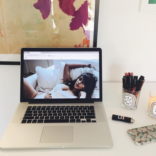 Lately I've been trying to embrace the less-is-more thing, with the exception of mascara. The more bells, whistles, colors, wand spikes and twists, the better. I can't remember the last high-end one I owned. Right now I'm using Hard Candy's Ginormous Fan Mascara. It gives you insanely long lashes. For my lips, I try to keep them looking like their natural color—but for a night out, it’s a Kylie Lip Kit, in Posie K or Koko K. Apply that once and literally don’t check it until you get home. For real!