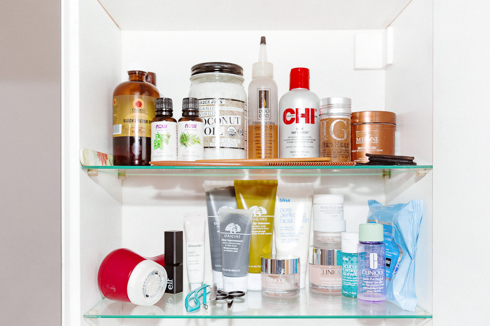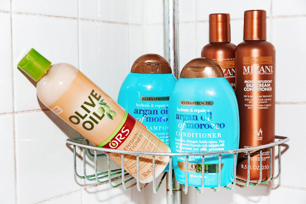 Again, all about ease. I get a weave and I get it done every eight weeks. It’s also a very therapeutic process. My hairstylist is in Maryland and I spend a lot of time in DC because our offices are split that way and I have family there. But, I use a combination of different shampoo and conditioners when I wash it myself once a week. Mizani The Botanifying Conditioning Shampoo and their Moisturfusion Silk Cream Conditioner is the combo I’ve been using since before my weave because it’s great for dry hair. I also use this Argan Oil from Moroccanoil and it’s actually really good for the weave. My tried and true conditioner is this Olive Oil Conditioner that’s like $5. I also love this Bed Head Hair Stick because it’s good for flyaways and keeping the edges down. For scalp care, I use coconut oil with little drops of peppermint and rosemary. I also wrap it to sleep and touch it up in the morning with my flatiron.