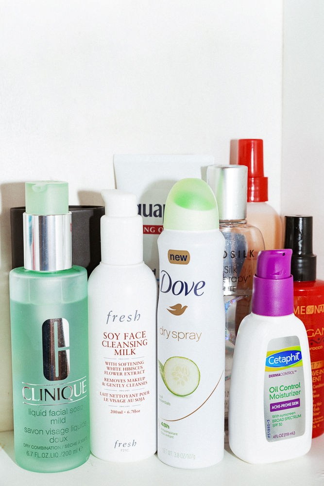 Honestly, my routine is very simple and I have girlfriends that are like, 'You don’t do A, B, C, and D?’ And I’m like 'Nope.' When I’m at home I just use Clinique Take The Day Off and a face wipe at night. My dermatologist is going to read this and be mad. [Laughs] When I started wearing a lot of makeup my mom told me I needed to start taking care of your skin, and that Clinique is really gentle. I think all their products are great but I’m addicted to their Face Wash and Moisture Surge even though I have oily skin. When I’m traveling, the Cetaphil Oil Control Moisturizer is good. If I have acne, which only comes up once a month, I use the La Roche-Posay Effaclar. It’s so amazing, but it’s a bit pricey so I only use a little bit and it works. And the Origins Clear Improvement Charcoal Face Mask is great. I have the travel size in my bag plus the normal one at home. It’s good for when my skin is feeling crazy and over done while I’m traveling.