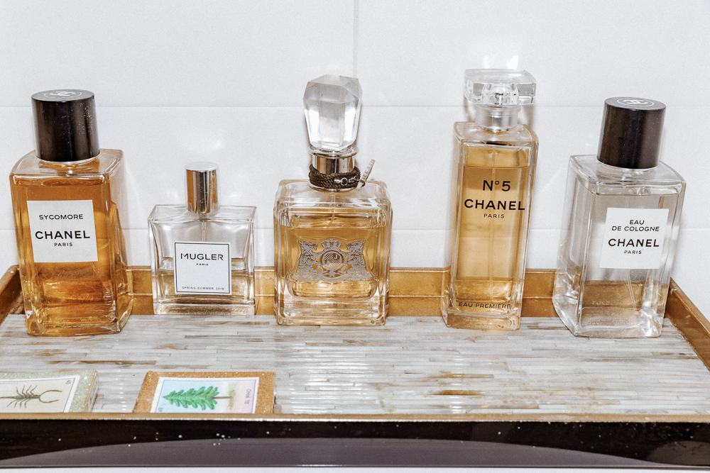 Generally, I like that dewy look. There is one powder I like from Laura Mercier—the Loose Setting Powder, and the Jane Iredale Amazing Matte Loose Finish Powder is great too. YSL's Touche Éclat is another good product... You can tell I love makeup. But I think it’s so beautiful, the packaging is amazing. I love the Chanel packaging, and the YSL packaging. I’m a makeup hoarder, I don’t even use it all. I just hoard it. It’s a thing!"