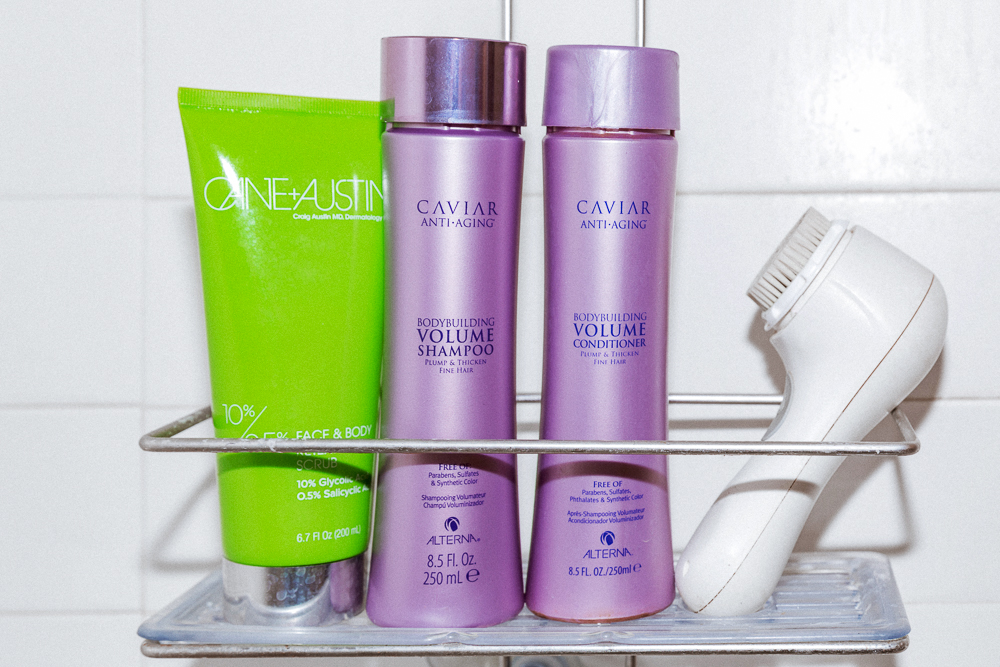 But I'm still being myself. When it comes to beauty I like it that kind of raw, undone vibe, and at night I'll do more of a look. Sometimes I'll have a makeup team, but I always do my own hair. I don't like it big—I like natural, almost surfer hair. Mine is thin, but there's a lot of it, so it's delicate and I can't blow dry it. Alterna is the best shampoo line I've ever used, the Volume Shampoo and Conditioner. I don't wash it every day, though. I'm obsessed with Gun-Britt's Stardust Hair Powder, but since you can't get it in America, I'm using Klorane Dry Shampoo right now. It's a great brand, and the product gives a lot of volume.
