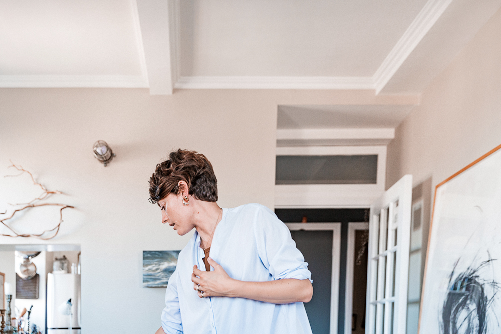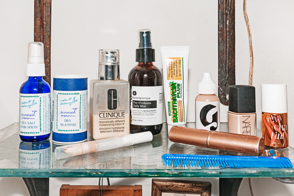 I’m definitely still that little girl who’s used to jumping off the boat and swimming in the water at any given moment––I wish that could be my everyday routine, but I guess you could say the way it’s manifested itself pretty clearly is with Captain Blankenship. But really, I love his Dry Shampoo and the Sea Salt Spray. Dry shampoo really saves me—I’m a fan of the Label M Organic Lemongrass one, too. I’m perpetually like, ‘gotta get out of the house!’ so my routine has to be whatever gets me there as fast as possible. When my hair does need something extra, I’ll do this Sans Ceuticals pH and Shine Corrector, which is more like a treatment. I’ll use that with the Sans Ceuticals Nourishing Hair Hydratant Ultra as a once-a-week hair mask. I don’t color my hair so it stays pretty healthy, but the minerals from working in the studio seem to make it kind of dry and brittle as well as just dirty, so I switch up my shampoos pretty regularly. Right now I’m using the Sans Ceuticals Hair Wash, with Kiehl’s Superbly Smoothing Argan Conditioner. That’s really nice and it works.