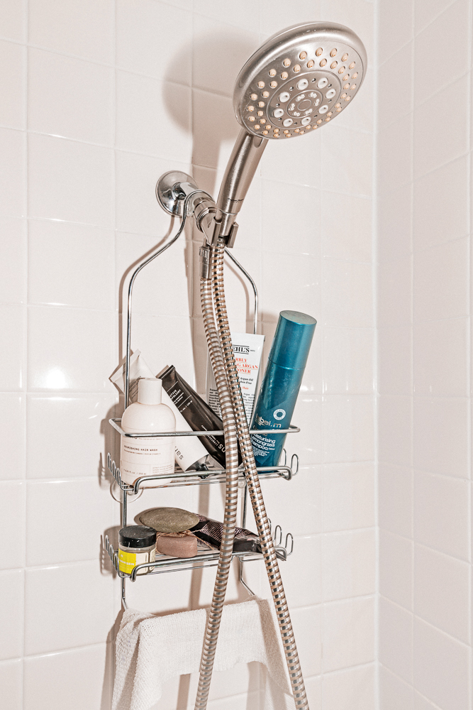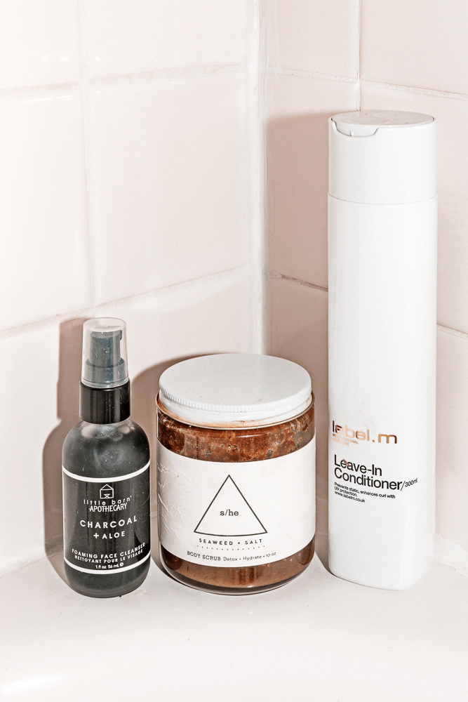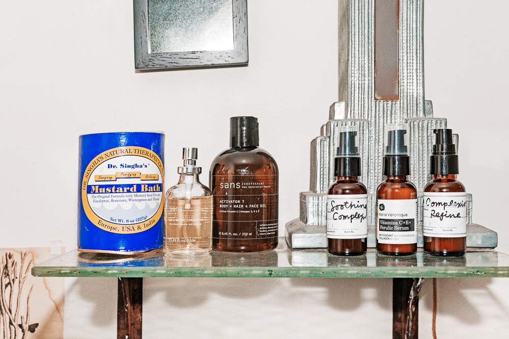 In the shower I have two scrubs—the Sans Ceuticals Bio Active Body Exfoliant is one. I’ve been told you can use it dry and then wash it off, and it’s cool because you really get the dead skin taken care of. The other one was given to me for my wedding, the S/He Seaweed and Salt Body Scrub that’s made with seaweed and bentonite clay, and it’s a really, really nice product. Simple and it really works. I think California loves me because I really don’t shower that often, so I save a lot of water. [Laughs] But I will take a long bath once or twice a week with a mask and hair treatments. It’s my gift to myself! That stuff makes me really happy."