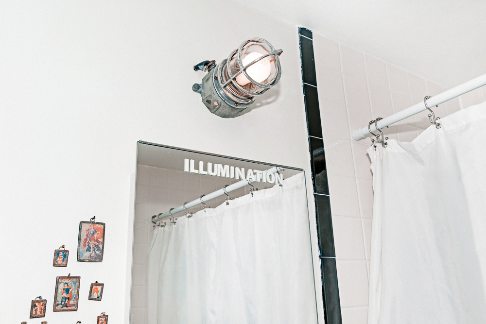 In the morning and throughout the day I’ll mist with this Marie Veronique Pre+Probiotic Daily Mist, sometimes instead of washing my face—otherwise it’s just a splash of water. That said, after long days at the studio, I know there’s so much shit that’s been spit up in my face. So I use the Little Barn Apothecary Charcoal and Aloe Face Cleanser—went for the charcoal for obvious reasons. It’s cool and it smells great, like earthy.