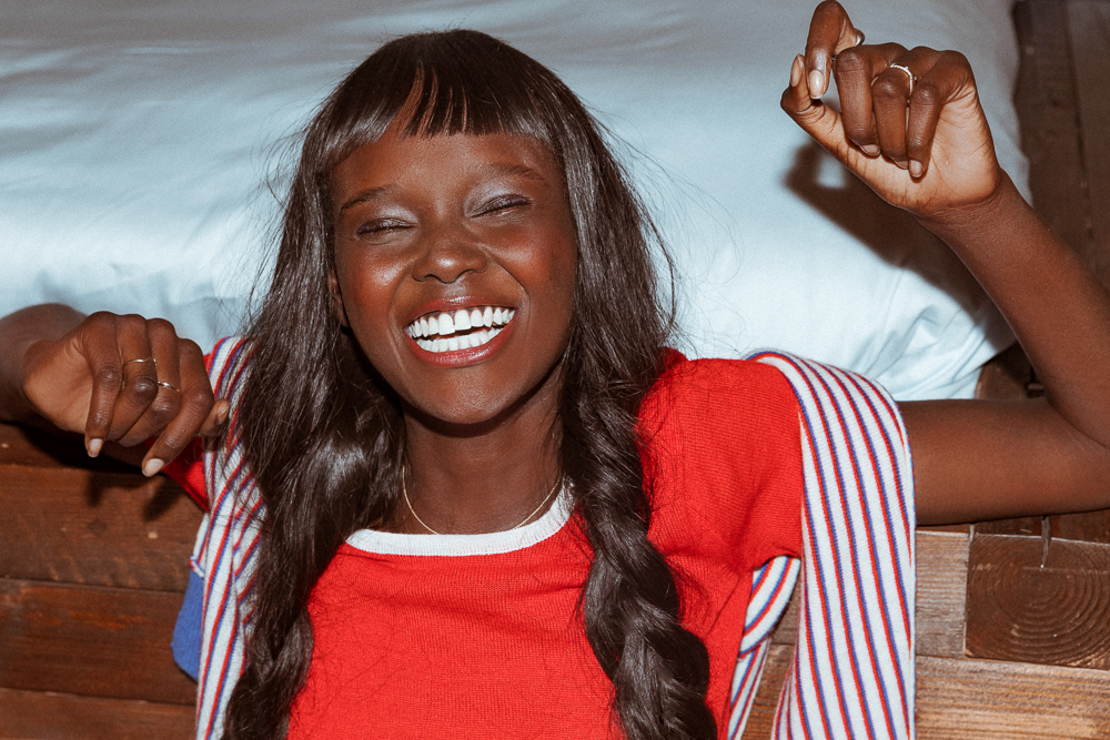 Duckie Thot (Elite) photographed by Tom Newton. Styled by Beverly Nguyen. Makeup by Nick Barose. Hair by Leona Wilson.