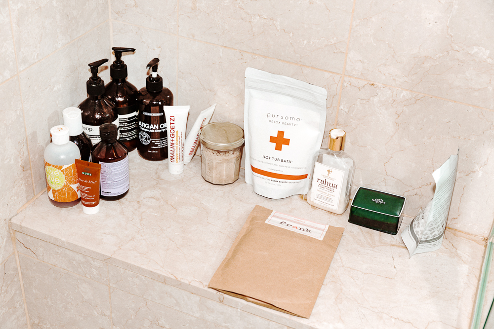 If I get home and I'm a little tipsy, I'll take off my makeup with the Serge Lutens Makeup Remover Pads that are so good. It's a pleasure to take my makeup off. I also floss before and after. If it's an early night, I might take a bath. I really like Pursoma Hot Tub Bath, or the Frank Body Scrub, which I've been using for awhile. But sometimes we'll go back out, go to karaoke, go dancing again. Then we'll walk around until 5 AM and all fall asleep together, and wake up and make pancakes. Just real quality time with friends. That's a memorable night."
