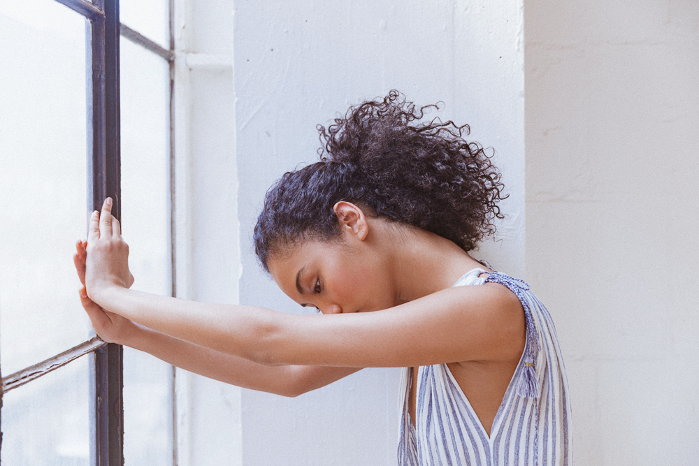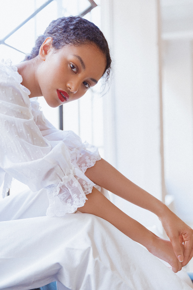 OK, if you want to spend a soupçon more time on your hair (and why not? Diffusing and scrunching is so low-impact you might feel motivated to go harder...), Neil got a little fancy for some inspo. Claudia got a loose chignon, this time properly at the nape of the neck, with texture all around, utilizing the Aquage Thickening Spraygel for an almost-wet look. The feeling? Soft but definitely polished. Meanwhile, Xiara got two braids roped around each other and detailed with the appropriately named Aquage Detailing Creme. Proper braiding makes hair happy and healthy, and stays put, which is key. Because if there's one thing girls with curly hair know, it's that natural hair rarely stays where you put it for long. Sometimes it's nice to be a little hands off.