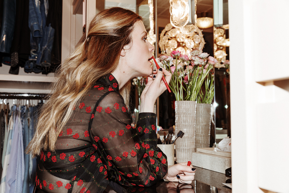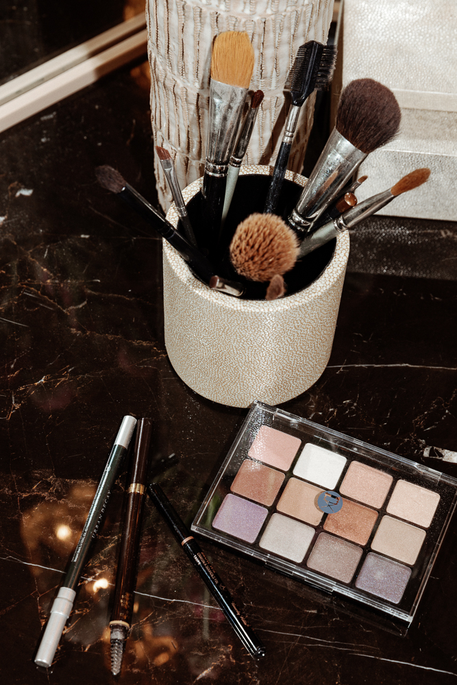 Anything that can make you look dewy and gorgeous, I love. Tonight I'm wearing Glossier Perfecting Skin Tint with some Tom Ford Shade and Illuminate, and a little Becca Highlighter. I love Becca—they're Aussies, so they're all about glow. I love Tracy Murphy’s Lash Star Mascara. It has two sides and one is too wiggle the lashes and one thickens them. I’ve watched her do my lashes and I can never do them the same. She’s a genius with the eye. Oh yeah, and eyeliner! I found the Rituel de Fille Eye Soot on Goop because Gwyneth Paltrow told me they would look smudgy and cool. I’m not a rock 'n' roll person but I love a smudgy, slept-in eye. Sometimes I’ll put a gloss over it. It makes your eyelids a little heavier and it feels very sexy and natural.