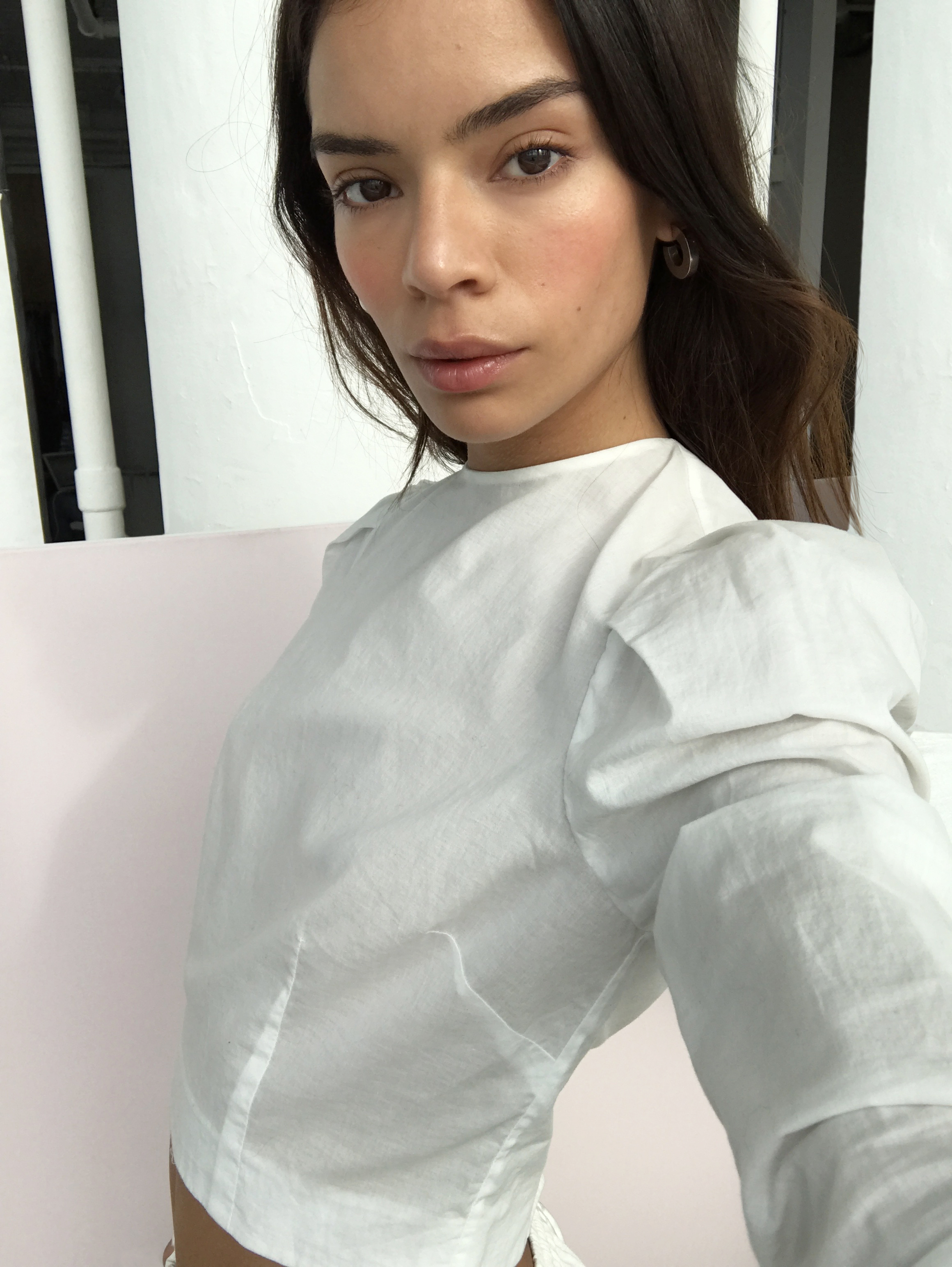 Cloud Paint comes in six shades encased in their own tiny little acrylic paint tubes. You can learn all about the product—like how it’s infused with collagen and blurring powders to instantly plump the skin and never leave a streaky finish—on Glossier.com. Here on ITG though, we’re going to take a different approach and give one of our favorite makeup artists, Ingeborg, the reins. She did the makeup for the Glossier campaign images and loves blush. Like, really loves blush. If anyone’s going to convince you need rosy-colored pigment on your cheeks from now until forever, it’s going to be her. Hit it, Ingeborg: