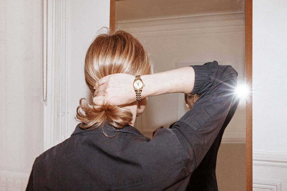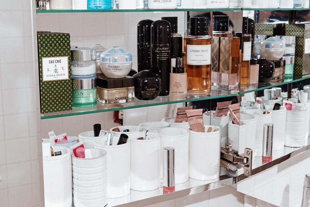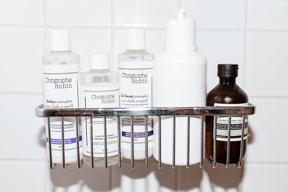 The hair! Most of the time I wear a ponytail, that’s my uniform for hair. I wash it every day because of the running, and I use Christophe Robin's Clarifying Shampoo with Chamomile. I figured it would be good for me, because I'm bleaching my hair. I'm an ashy blond—kind of greyish looking. I get it colored once a month, and my good friend cuts it from time to time. But I should do more to it. See, I have all of these products and I never use them. My hairstylist tells me I should do something, and I don't. I don't know how to blow dry. [Laughs] Seriously, I don't! I'm not going to pretend. I got it cut yesterday, and then I just slept on it. I don't even like it right after the hairstylist's—I don't like when it looks too perfect."