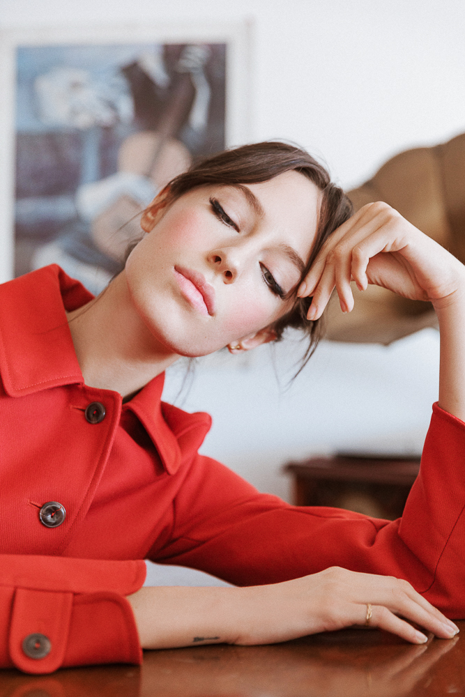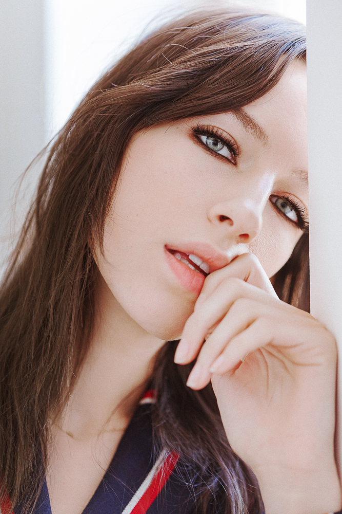 Alix Angjeli photographed by Tom Newton. Makeup by Grace Ahn. Hair by Sirsa Ponciano. Styling by Lilli Millhiser.