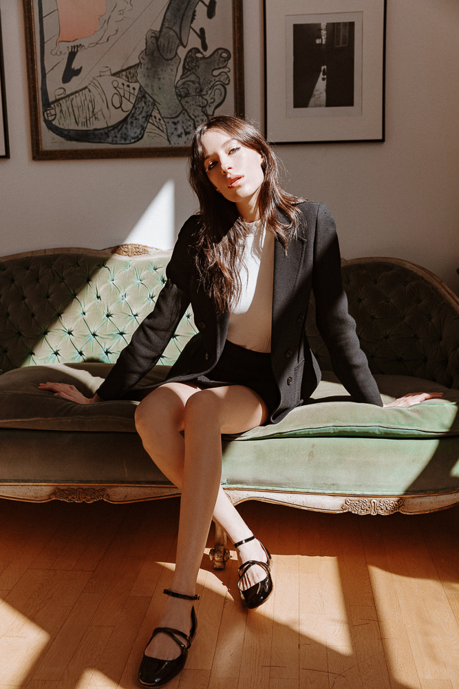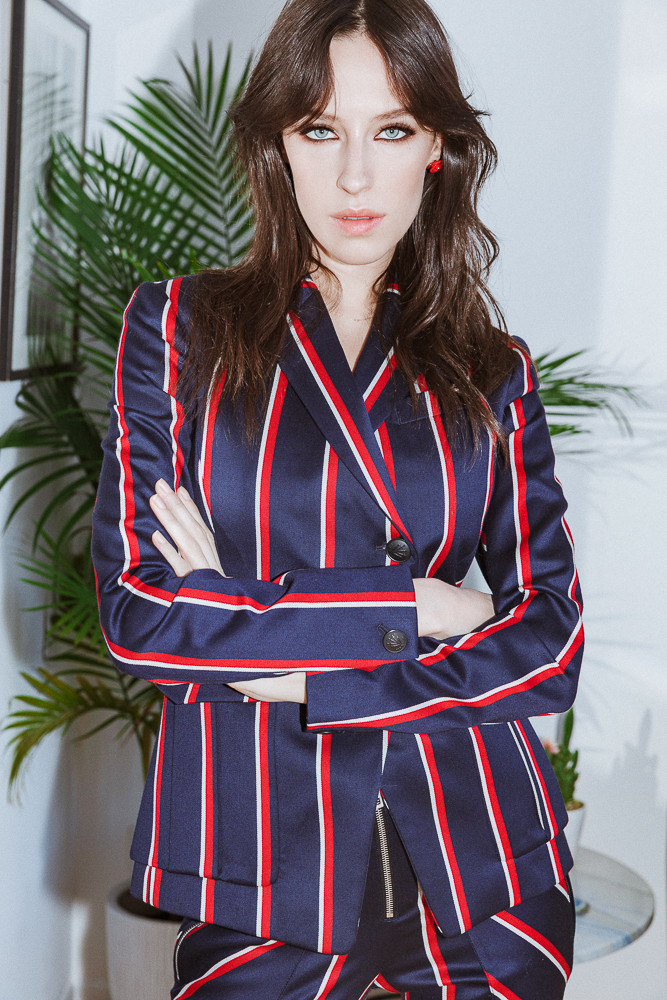 Alix wears a Rag and Bone jacket and Trademark earring.