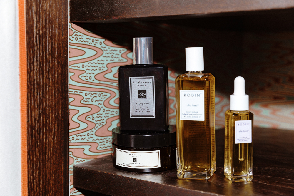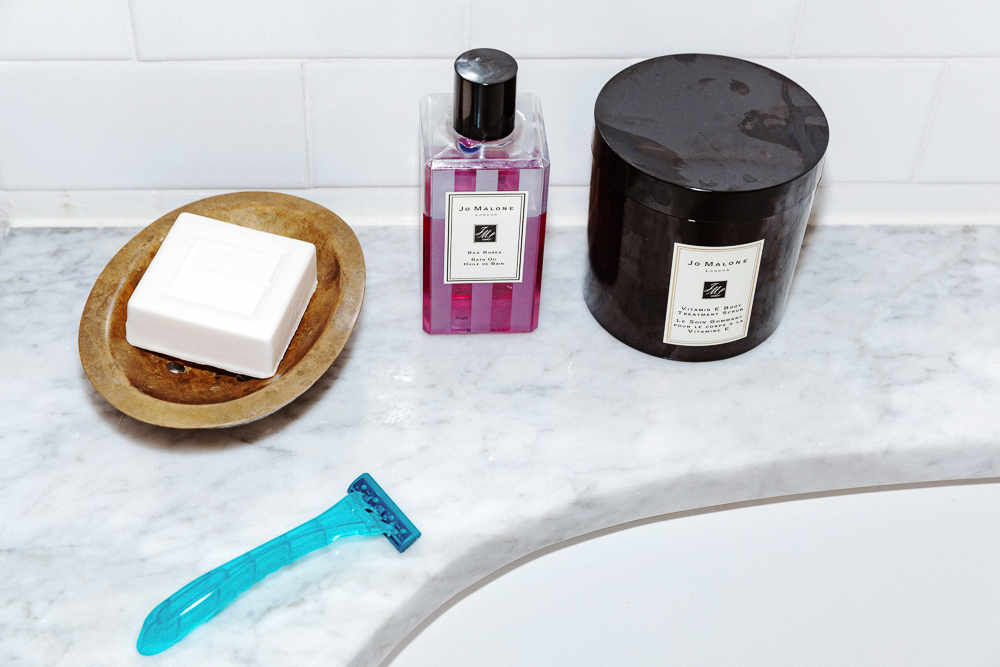 I have a jet lag treatment that’s really soothing. First, I have to have Jo Malone Red Roses, it’s my favorite candle. It smells heavenly, and I’m an English rose! I like anything with a rose scent. In my bathtub in Nashville you walk into my bedroom and the whole thing smells like red roses. So if I get in late, I’ll immediately jump in the bath—the Rodin Bath Oil is so amazing and chic. Then I’ll put the La Mer Perfecting Treatment on my face. This shit is good! Afterwards, I have the Skinceuticals Triple Lipid Cream—it’s massively hydrating. A lot of the Skinceuticals line is too strong for me, but this just soothes jet-lagged skin so well. That’s the routine.