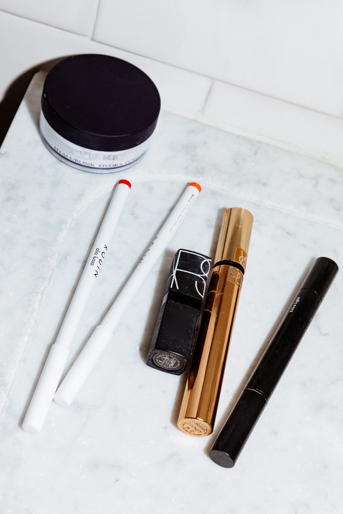 My mascara is something that changes all the time. Right now I have YSL in Brown because Bette Davis said that redheads shouldn’t wear black mascara—we look cheap. That always stays in my head, but I also have a black mascara from Hourglass. And I do like a little Charlotte Tilbury black mascara. For liner, I have a Bobbi Brown Ink Liner in Brown that I use on the top and bottom lines. I also have a Chanel bronze-y brown one. Often I use more brown shades, because of my red hair. But I don’t like red brows, you start becoming too pumpkin-y. It becomes too much. So I use an Anastasia really thin pencil that I tightly draw in. I can't stop figuring out what my eyebrow shape is because it’s so blond that I need a pencil. I’ve done a tint a few times and then it feels like too much.