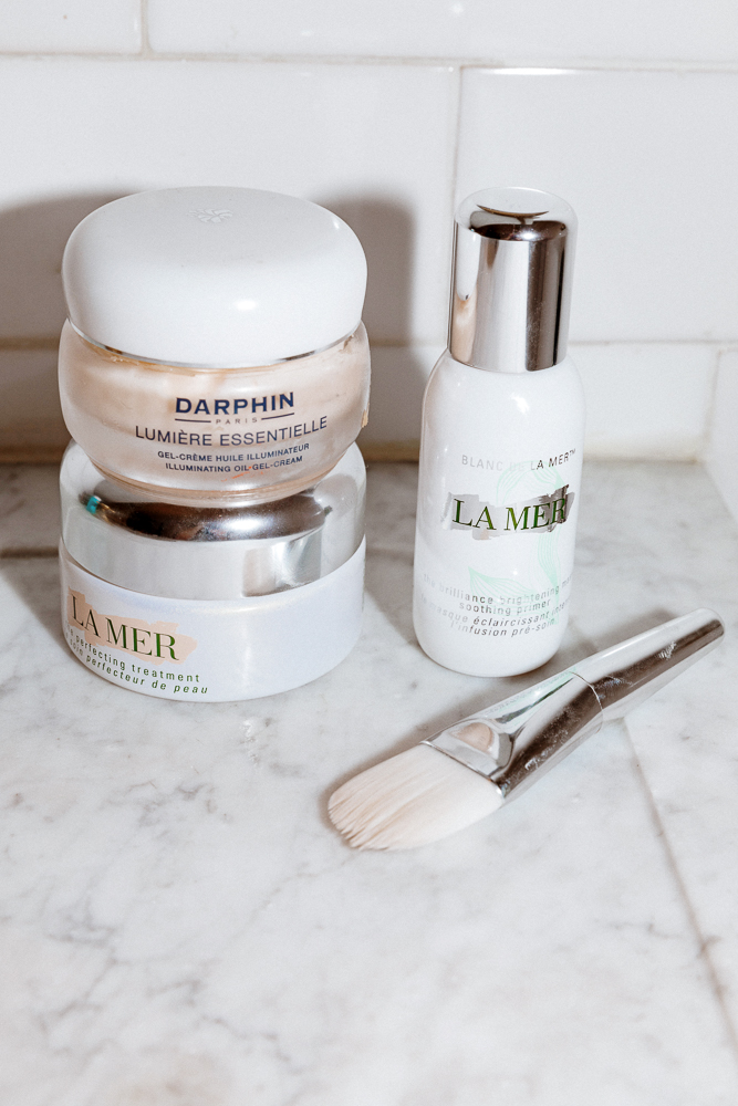 I learned everything I know about makeup from artists like Pat McGrath. She changed my approach to lipstick entirely. I now use my fingers to apply lipstick. She never uses the brush—ever. Even applying eye shadow sometimes—she’s literally hands on. But I don’t normally wear any more makeup than what I have on today. Before I start, I like to use the Darphin Lumiere Essential. It’s really good because it has a little shimmer in it. But not too much! I hate when you’ve got too much highlight because it can start looking like the airbrush stuff.