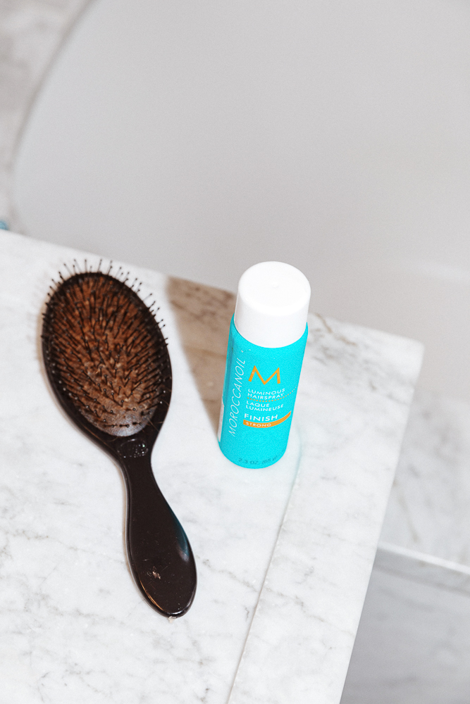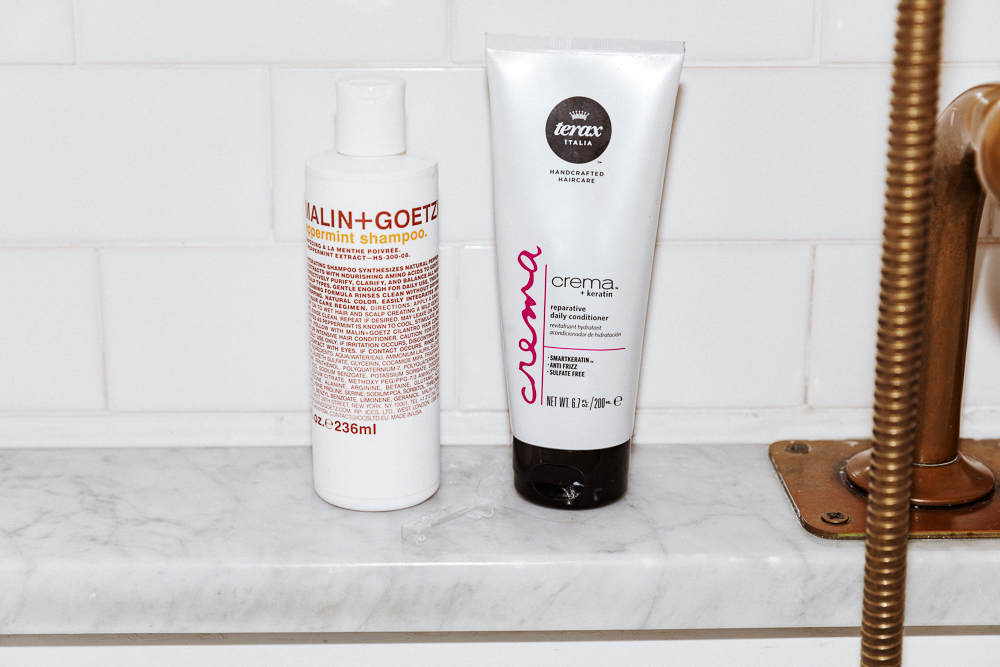 My hair is so fine that you could put a couple of drops of something and it would completely destroy it, but I do like the Oribe Foundation Mist. That stuff really helps. I won’t blow dry my hair but I might curl it a bit to make it less unruly. My curl is actually insane, so I use Terax, it’s amazing. I saw it at Ricky’s when I was in my 20s. A hairdresser recommended it and I’ve been using it ever since. I’ve used different products consistently but I always come back to it. It has a way of making it feel healthy again. Something might work for a few months and then I need to try something else. I put coconut oil in occasionally and I’ll wash it out in the morning.