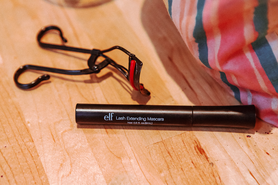 My mascara is this black e.l.f. one because my lashes are so light. My hair isn't naturally this color, but I dye my eyebrows so people think it's much darker than it is. I dyed them for the first time when I was 15. I was so annoyed because you couldn’t see them, and then, I stumbled on this video of a woman dying her eyebrows with beard dye. Eyebrow dye is too thin and it would drip into people’s eyes and blind them, but beard dye is super thick so it doesn’t do that. Suddenly, I realized I had eyebrows.