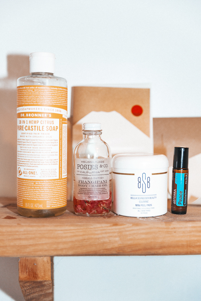 Someone just gave me these peels—Bella Schneider Beauty Mini Peel Pads. You know when you get a facial and they do a peel or whatever? I guess it’s like that. I think it’s supposed to make your skin look brighter. A lot of times I just go sample stuff at the grocery store. I use this one spot treatment called Peaceful Mountain Homeopathic Gel. I think it might be bull, but I’ll use it to try and make myself feel better.