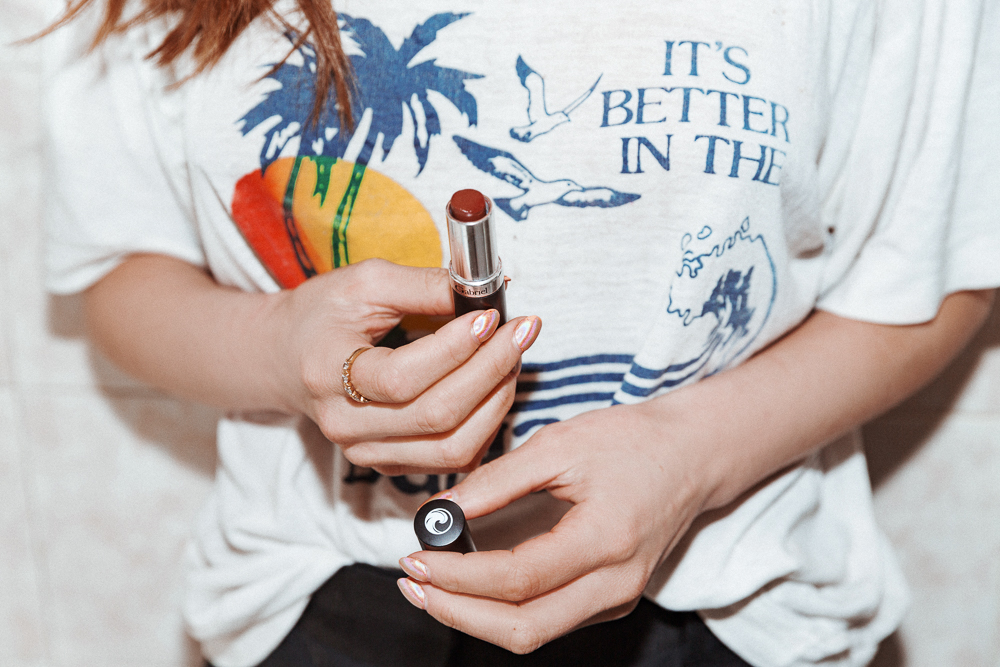 Day-to-day all I really use is lipstain and a brow. I’m super obsessed with the Vincent Longo Lip and Cheek Gel Stain and I can never find it in LA. You can only get it at Duane Reade. It’s kind of peach and sheer. And then I love Glossier Boy Brow. Those are my two mainstays. I have this Super Shock Highlighter in Wisp that I’ll use on my cheeks and the bridge of my nose, too. I like when I don't look like I'm wearing makeup.