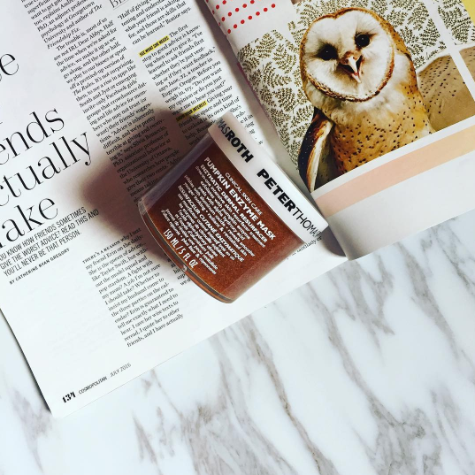 My most recent discovery is the Peter Thomas Roth Pumpkin Enzyme Mask. It's like laser in a tub—it's got pumpkin enzymes and AHAs which chemically exfoliate. It's pretty intimidating at first, because it feels like your skin is burning when you first apply it. I use it twice a week and within a few weeks I noticed that my stubborn acne marks were fading, and my skin was baby soft. I recommend this to everyone. It’s a terrific skincare investment and it smells like pumpkin pie. What more do you need?"