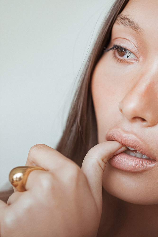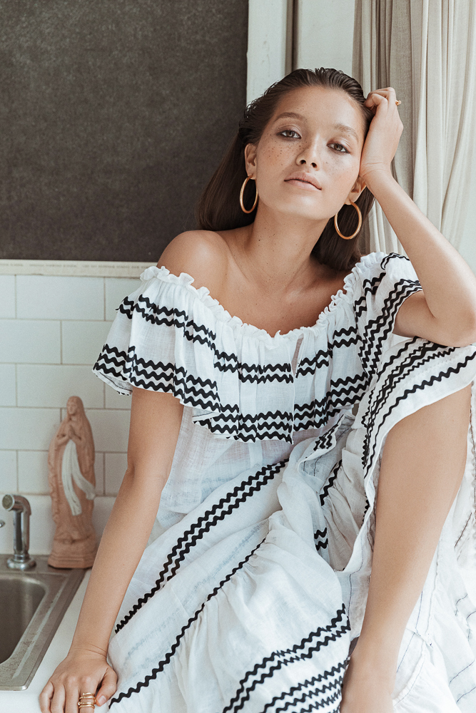 Nude Lip: Yada wears a Lisa Marie Fernandez dress and skirt with Tuza Jewelry earrings.