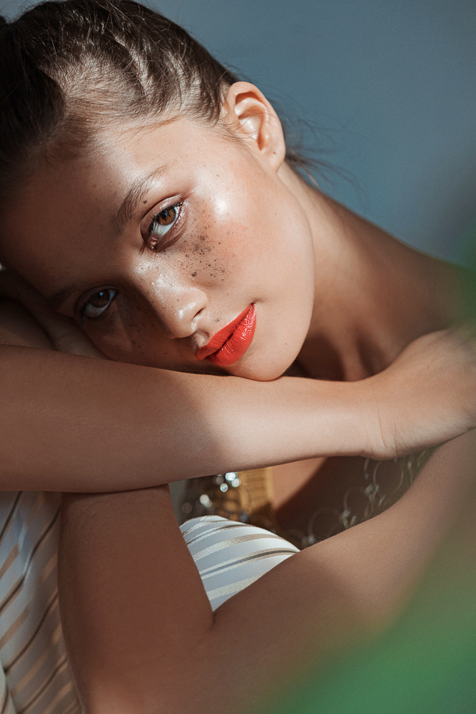 She also gives you your new summer lip: the orangey red Burberry Lip Velvet in Regiment Red. Goes great with freckles. And maybe a bathing suit. And definitely sunscreen.
