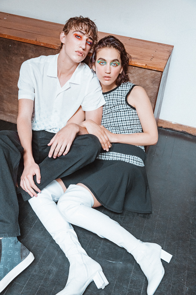 Maximillian Mertz and Sofia Fanego photographed by Tom Newton. Makeup by Lucy Burt. Styled by Harrison Karabaccio. Hair by Clara Leonard