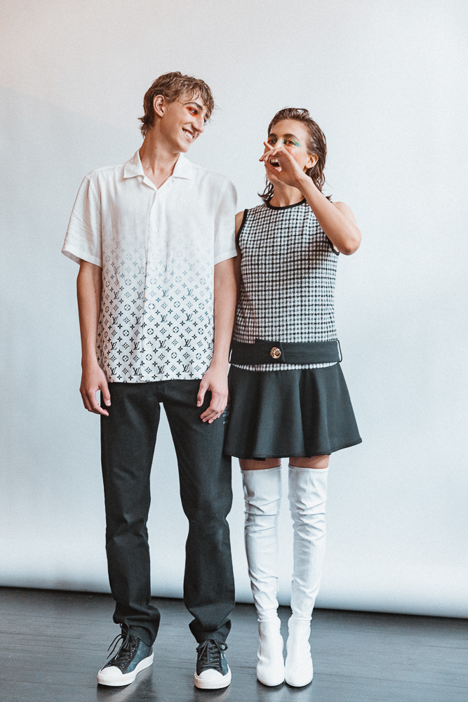 Maximillian wears a No. 21 sweater and Burberry pants and shoes. Sofia wears Miu Miu.