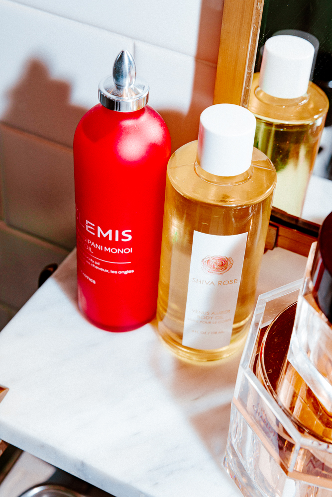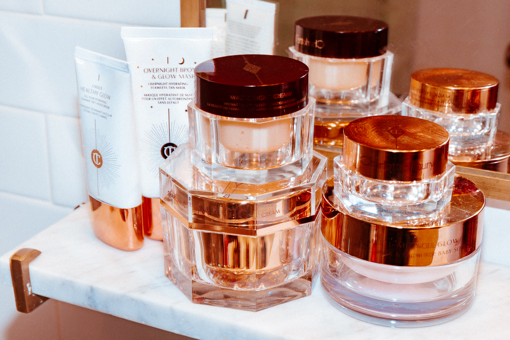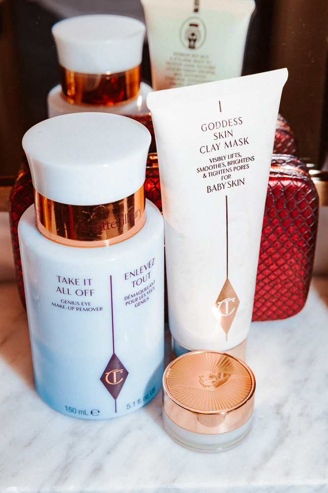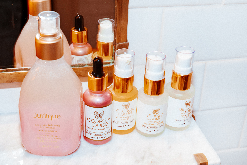 My style is very glamorous, all the time. I'm very nocturnal. I'm always in a heel, and I can always amp it up. But most of the time I'm running from the office to an event, so I'll end up tossing on a mask really quickly. Clay is the best—I like to use our Goddess Skin Mask, and I'll leave it on for 15 minutes just to take down inflammation. After that, I'll sometimes use the Georgia Louise Face Oil—I love oils. Then I put on my Magic Cream, and I use these little depuffing tools from Georgia Louise under my eyes. I keep them on ice, and they're really good on pores, too.