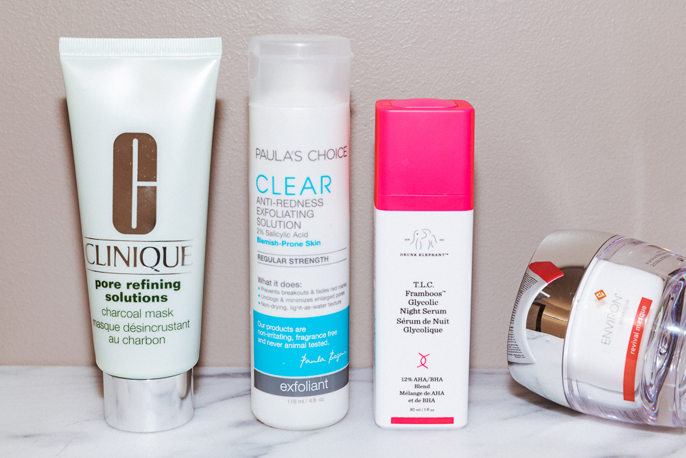 It's a maximalist approach, but Jordana suggests regular clay masking paired with a gentle peel for maximum results. "Masks with clays can reduce oil for a few days, and leave your skin soft, smooth, and shine-free." As for peels, "glycolic and salicylic acid are my go-tos. These get into your pore lining to exfoliate so oil doesn't get backed up and cause bumps. You can use each separately or together." Her ideal suite includes: Clinique's Clay Mask, Paula's Choice Anti-Redness Solution with 2% salicylic, or Drunk Elephant's glycolic Night Serum.
