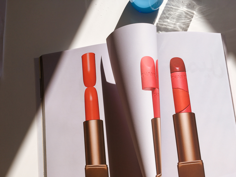 Very cool, very niche, very heavy. It's beautifully designed and printed, and quite maximalist too. There's so much to feast your eyes on, lipstick bullets being melted away by Glossier Milky Jelly Cleanser, tons of bizarre sunglasses—it's all surreal and magical.
