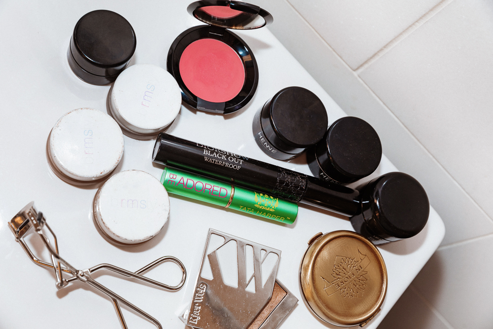 My YSL Touche Éclat is shade 2. I just do it under my eyes and around my nose. That's for shoots or events—it's less natural looking, so I won't wear it to work out. I use something like RMS Un Cover-Up instead. I've been loving Kjaer Weis lately, especially the bronzer. It screws in and out and there's a mirror in the compact. My skin loves it, and that's good for working out, too, because it's a creamy formula. I used to use powders and my friends, who are so sweet, would just be like, 'Do you want to blend that?' [Laughs] With this, you just kind of pinch your cheeks and go.