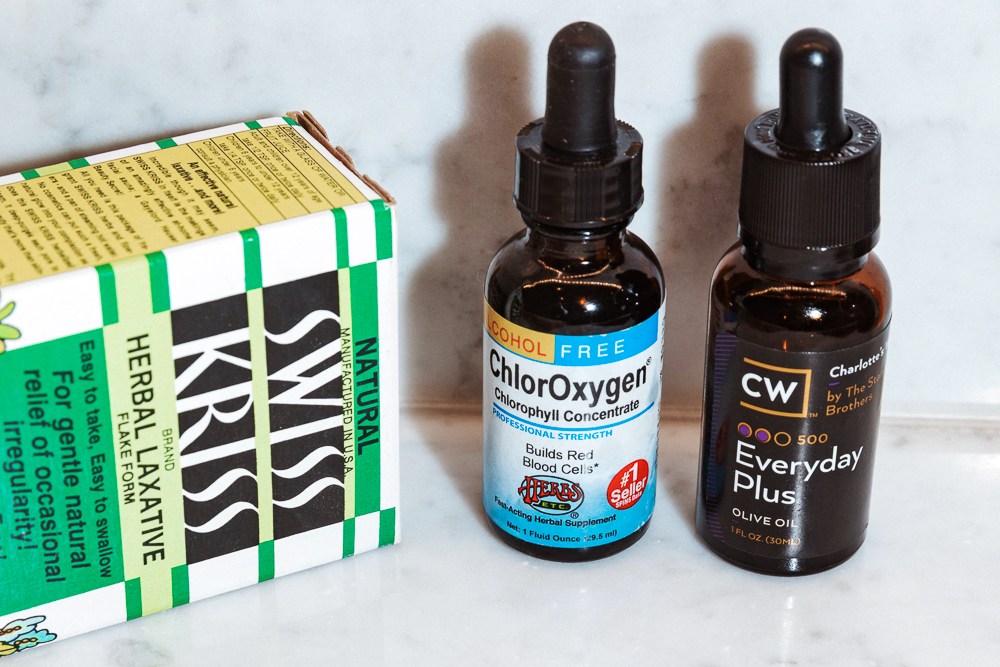 My favorite thing right now is this CBD oil. It’s cannabis-derived, but you can buy it in California at the health food stores without having to go to a dispensary. It calms my nerves so much, but I mix it with my beauty oil and it’s really really good for the skin, too. My friend gave me this L-Phenylalanine—she says it’s like herbal Xanax, and it helps me sleep. I always hand them out to people. It’s nice because it can completely help you sleep, but without that hangover feeling that sometimes comes with melatonin.