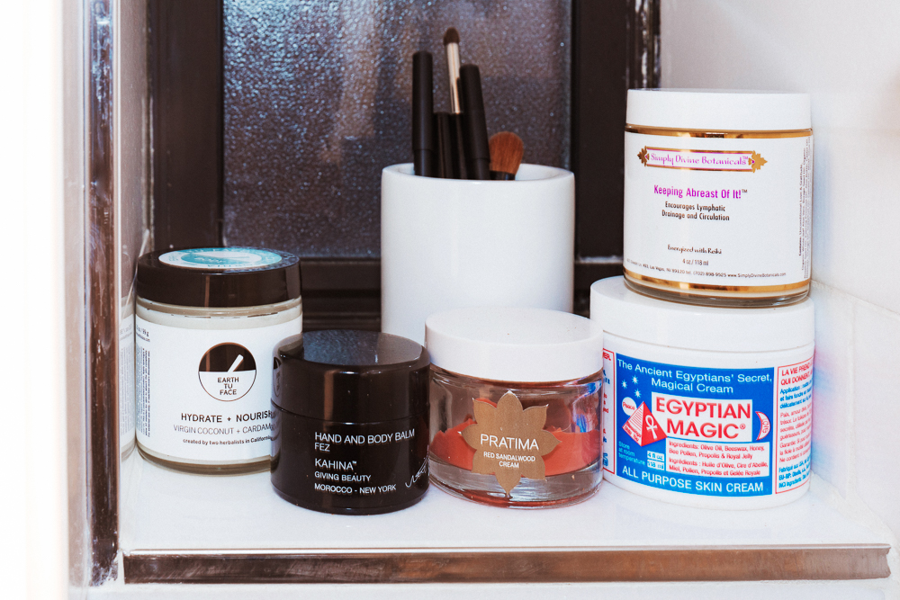 My diet is pretty healthy, but I’m not obsessive about it. I eat vegan and I just happen to love it. When I grew up, my parents were definitely not vegan by any stretch—although, I’m getting them into it. I just grew up in rural Massachussetts where no one was doing it, and I was this health food store nerd. That’s where I get my beauty products.