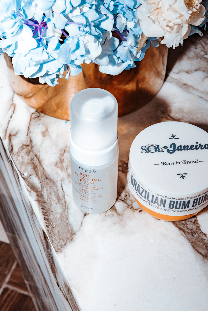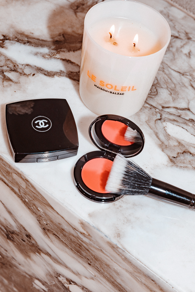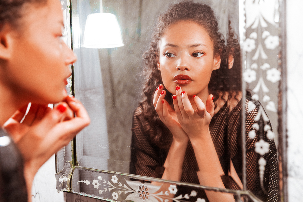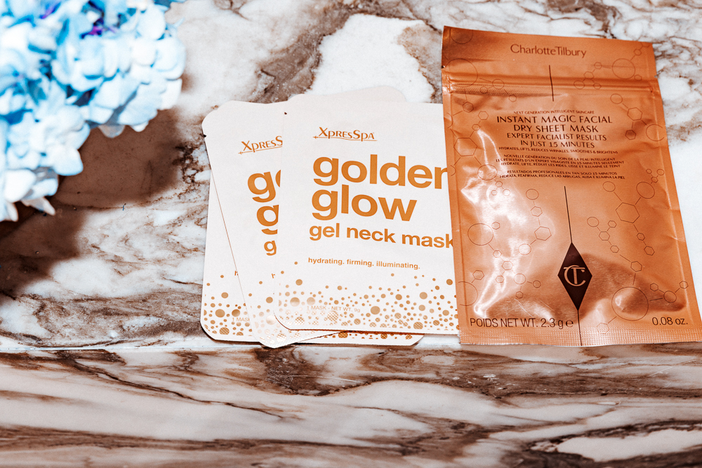 All in all, it takes me 15 to 30 minutes to get ready to go out. If I want to be quick, it's 15, no music playing. If I want to take my time, it's a half an hour. Although, if I was going to go to like, the Met Gala, I'd take a nice long bath beforehand with some lavender and olive oil. Maybe Jo Malone's Pomegranate Candle, and a glass of champagne. [Laughs] If I had a whole glam team, that'd be nice, too. But I love doing it myself. Beforehand I start with a mask—Charlotte Tilbury makes a great one. Not the clay mask, that makes my skin feel like paper. It's the Dry Sheet Mask. It works really well. I didn't know you could reuse them... I almost threw it in the bin!