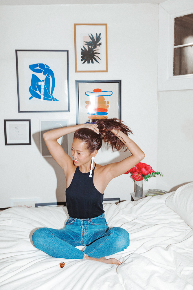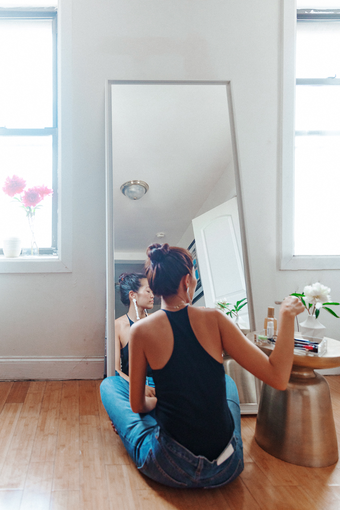 Day to day, I don’t wake up super early. It’s more about how much work you get done in a day. I’m just not a morning person, I’m always late. My mom says I was born a week later than I was supposed to. [Laughs] But it only takes me 30 minutes to get ready in the morning if I don’t have to shower. It's probably because I’m high-maintenance on skincare, but low-maintenance on makeup—and a lot of my skincare happens at night. I’m less loyal to brands, but I always have to have two cleansers, a toner or essence, a cream. I’m Korean, and I’d say all my beauty habits are from my mom. She follows all the rules—and she has incredible skin. She goes from her face all the way down to her décolletage. And, I don’t know if it's an urban myth, but she’d say stuff like, every night you don’t wash off your makeup, your skin ages by a week or something. Now I’m very diligent about having good skincare.