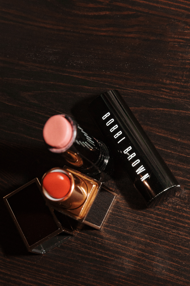 For lipstick, I prefer the Nars Velvet Matte Lip Pencils. The satin ones, for me, smudge more, and I know there’s a whole routine you can have, but I’m just too lazy for that. My lip routine is like, chapstick, and then, like dab lipstick all over. But in terms of formula, I’ve been really amazed by the Tom Ford Lips & Boys in Dominic. This was what I wore through the holiday season, it’s like a subtle red. And then for a nude, I like Bobbi Brown in Pink Nude 20.