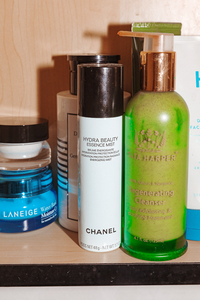 And that’s it! Oh, I also love this, the Chanel Hydrabeauty Essence Mist. I used to use an Evian spray as just like a midday refresher, and this one is definitely a splurge, but it smells really nice and it’s really refreshing.